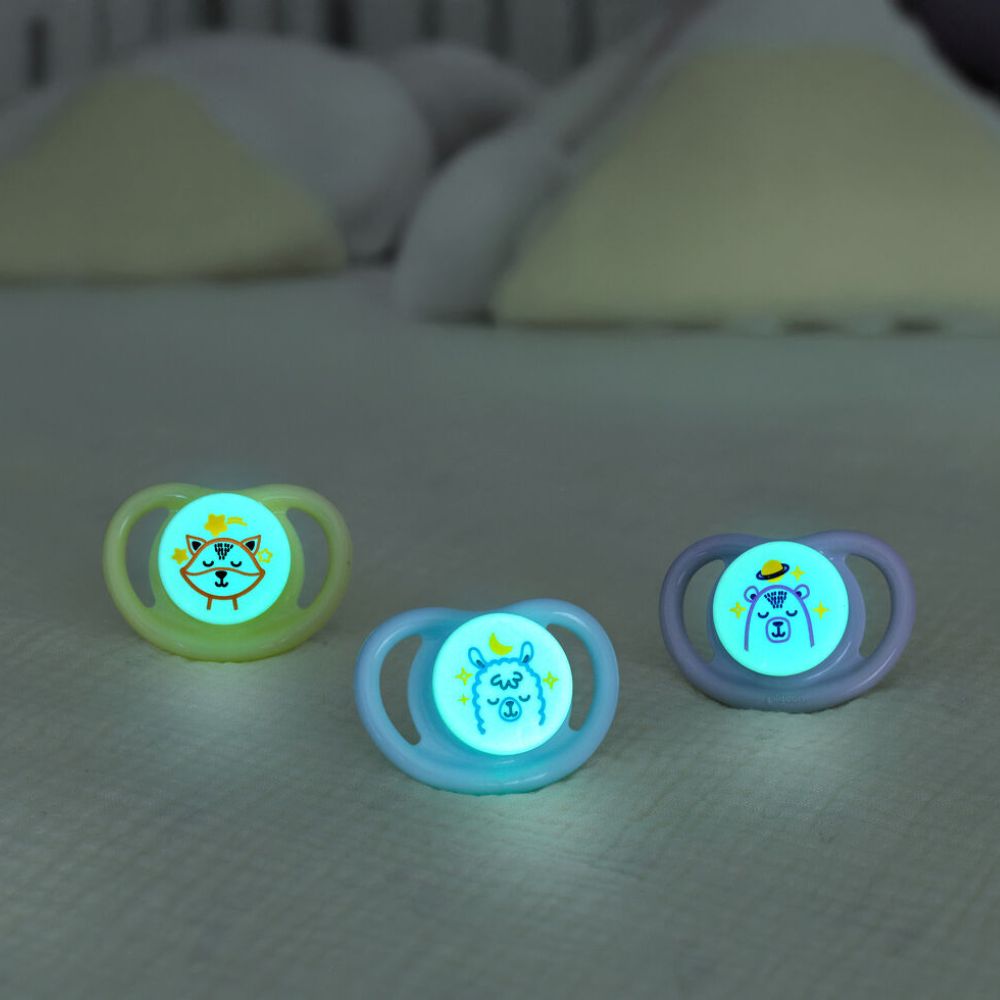 El chupete más liviano de Pigeon, ahora brilla en la oscuridad, facilitando encontrarlo de noche sin despertar al bebé. Incluso el propio bebé puede ubicarlo fácilmente.