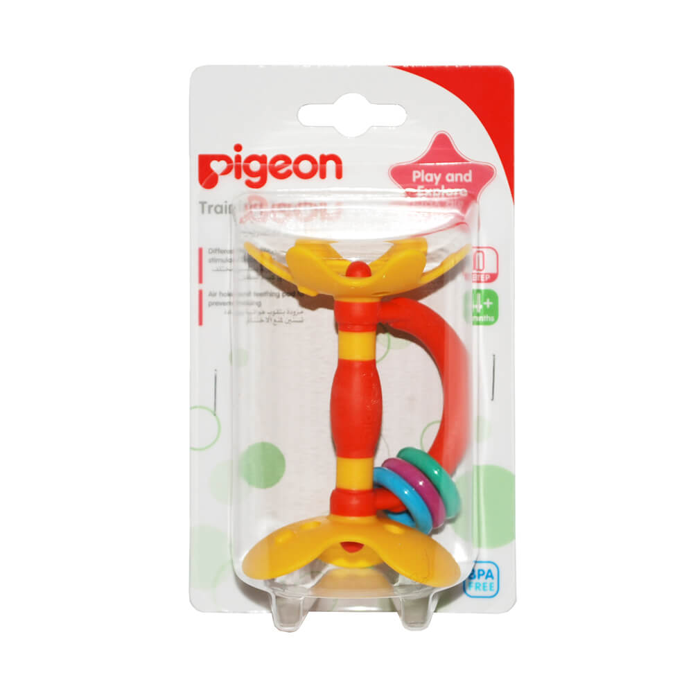 Es natural para los bebés poner cosas en su boca, ya que están explorando sus sentido. Este masticador de Pigeon es una ayuda ideal para el desarrollo bucal de los bebés. Los labios de los bebés son sensores táctiles y son esenciales para aprender a comer correctamente. A partir de los 4 meses en adelante, su bebé aprenderá a sentir con los labios. El adecuado desarrollo preparará al bebé para los alimentos semi-sólidos. El masticador de aprendizaje- paso 1 es un estímulo ideal para los labios con diferentes texturas suaves y flexibles. La forma de pesa es fácil de agarrar y los anillos de colores incentivan a su bebé a jugar y explorar.