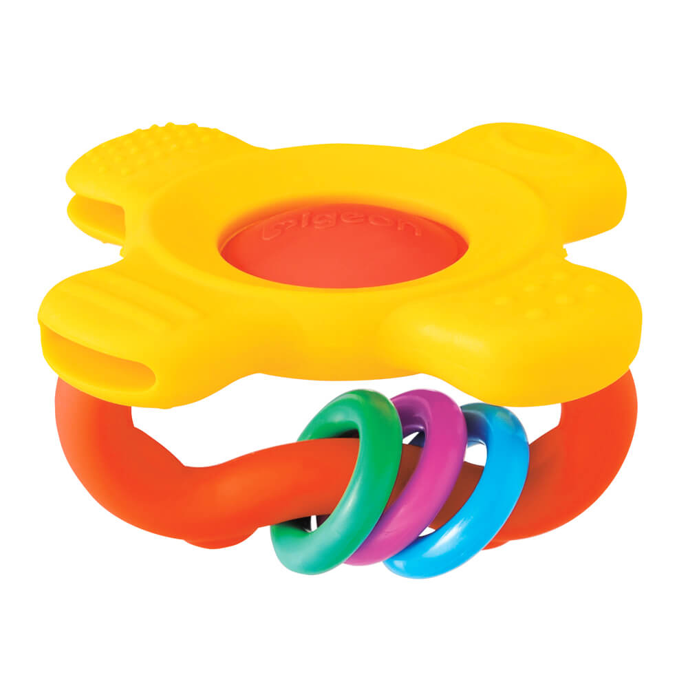 Es natural para los bebés poner cosas en su boca, ya que están explorando sus sentido. Este masticador de Pigeon es una ayuda ideal para el desarrollo bucal de los bebés. La membrana periodontal es un tejido carnoso entre el diente y la cavidad que sostiene a los dientes en su lugar, y le permite resistir las tensiones de la masticación. A partir de los 7 meses la membrana periodontal entre los dientes del bebé comenzará a desarrollarse y actuar como un sensor para determinar la textura de los alimentos. El masticador de aprendizaje paso 2 es un estímulo ideal para la embrana periodontal . Con diferentes texturas para mascar , un sonajero y atractivos anillos de colores incentivan a su bebé a jugar y explorar.