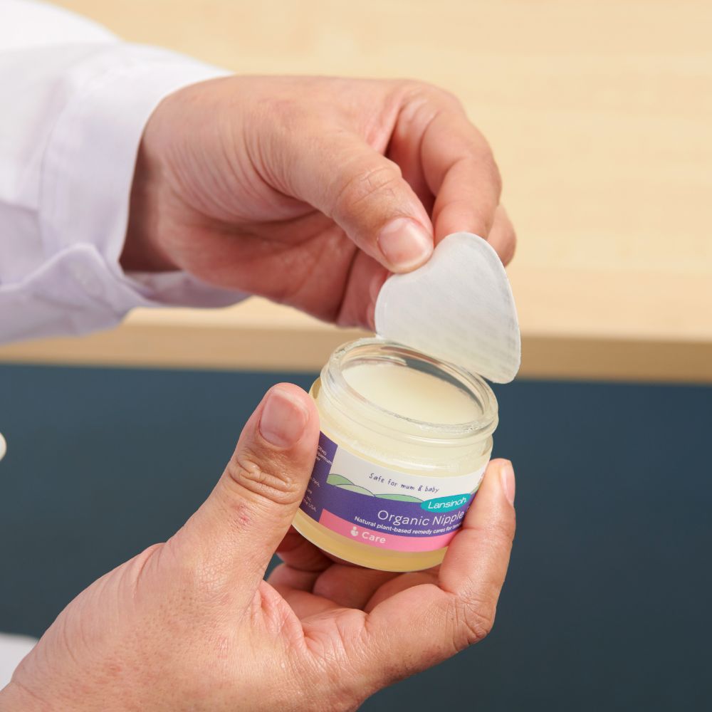 Desde los primeros días del bebé, el bálsamo para pezones orgánico puede aliviar la zona del pezón en caso de piel seca.
