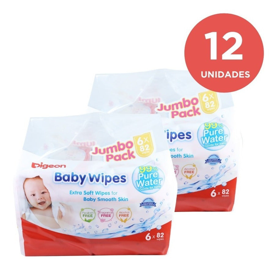 Pack X 12 Toallitas Húmedas 99% Agua Pura 82 Hojas