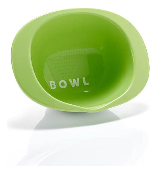 Tazón con diseño de puntos en relieve para hacer puré a la comida de manera fácil y conveniente.