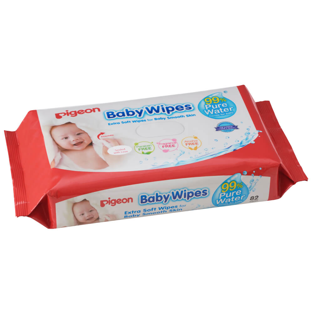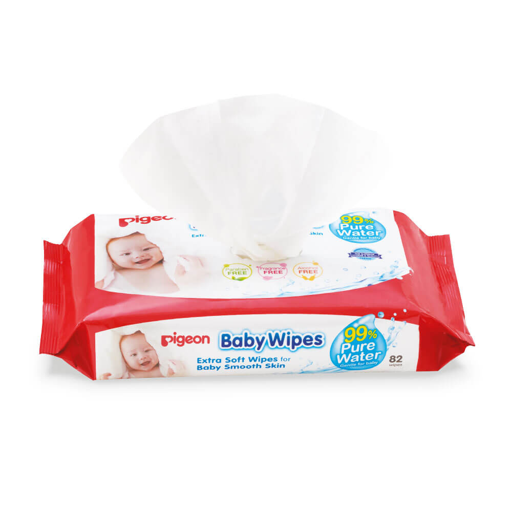 Las toallitas húmedas Pigeon 99% Agua Pura son adecuadas para limpieza de las manos y cara del bebé y el cuidado de la piel sensible del adulto.